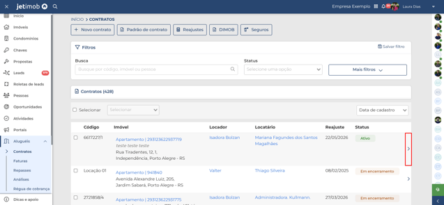 2. Abra o contrato em questão, clicando na seta lateral da tela: