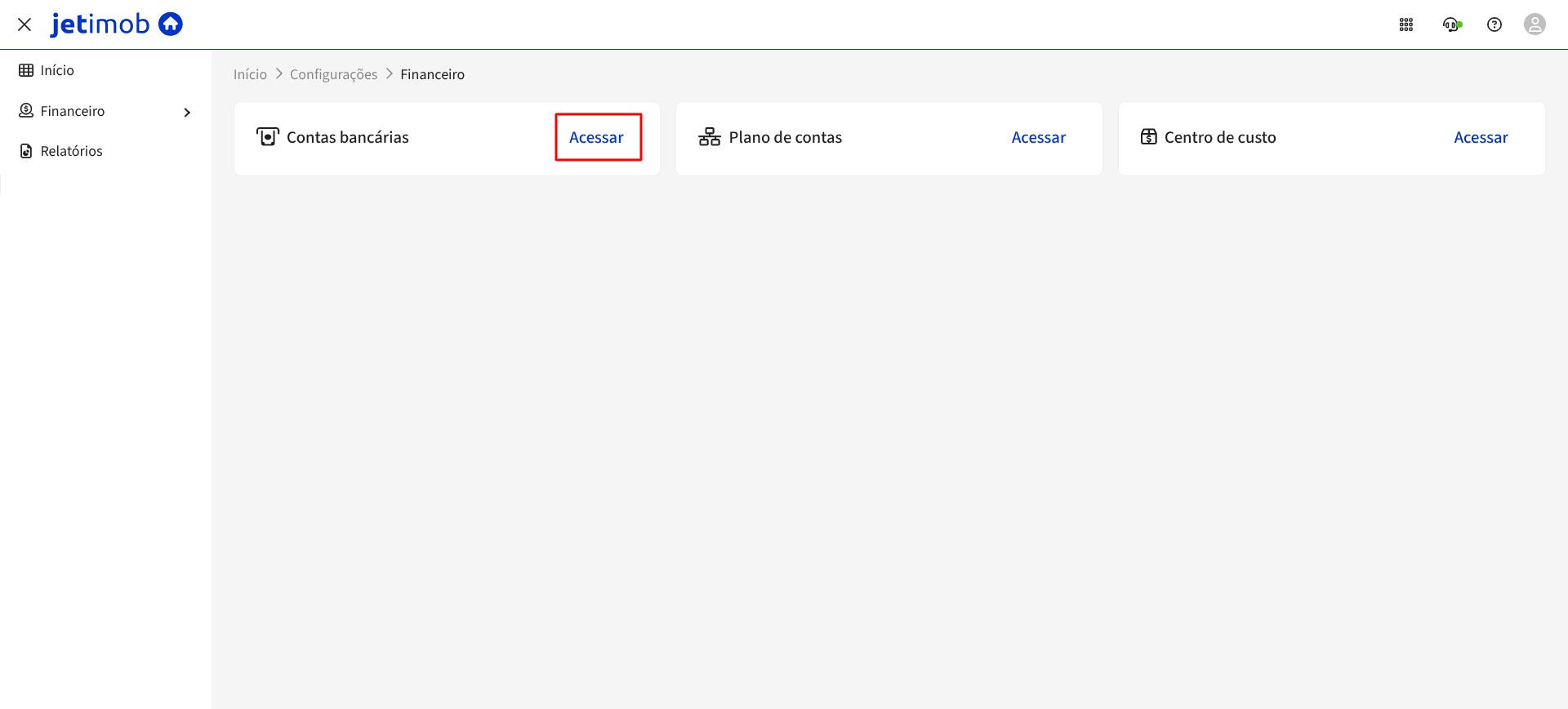 3. Clique em "Acessar", ao lado direito de "Contas bancárias":