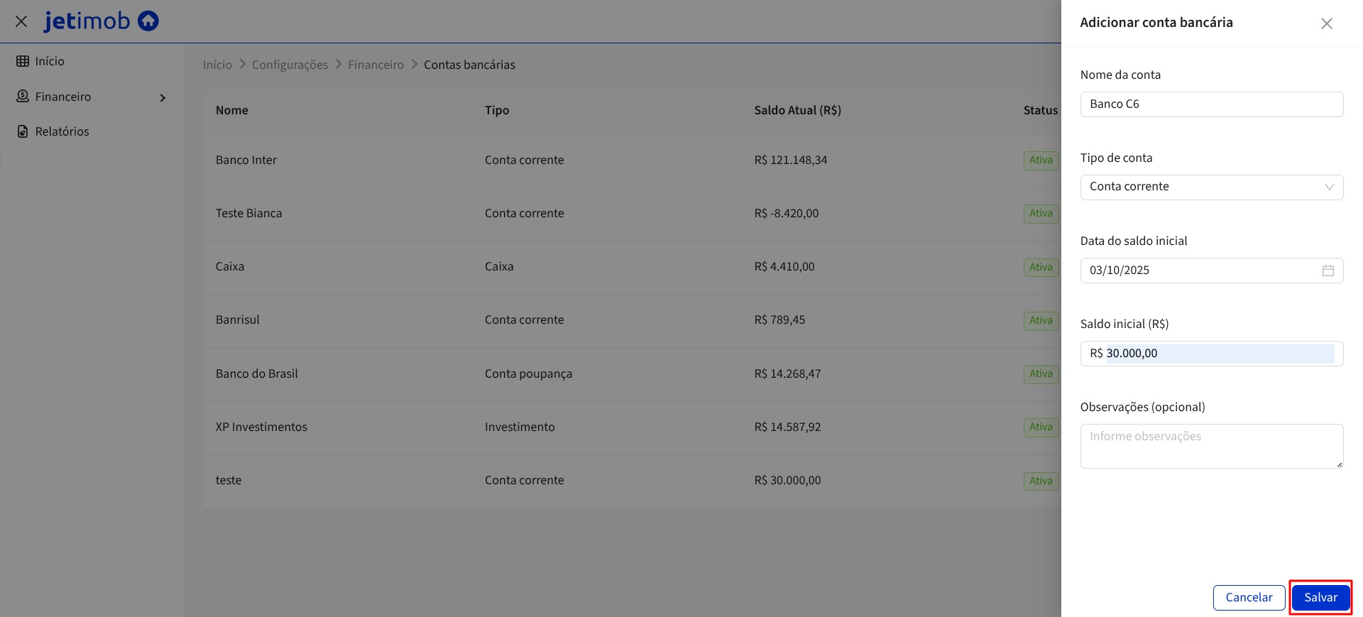 Como cadastrar contas bancárias no módulo de Gestão Financeira?