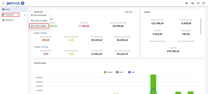 1. No menu lateral esquerdo, clique em "Financeiro" e depois em "Contas a pagar":
