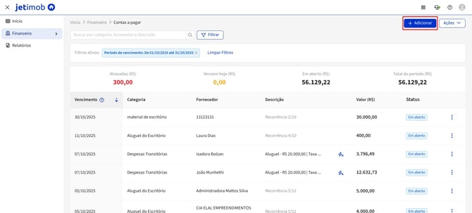 2. Clique em "+Adicionar":