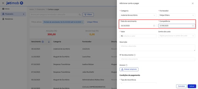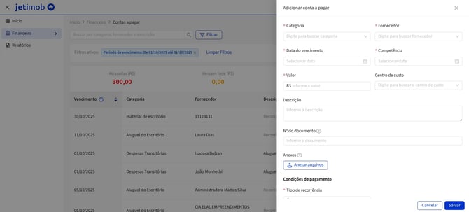 Como cadastrar uma conta a pagar no módulo de Gestão Financeira?