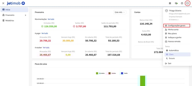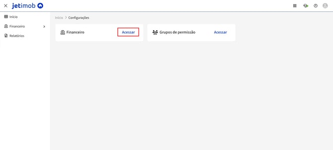 2. Clique em "Acessar", ao lado direito de "Financeiro":