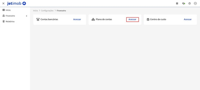 3. Clique em "Acessar", ao lado direito de "Plano de contas":