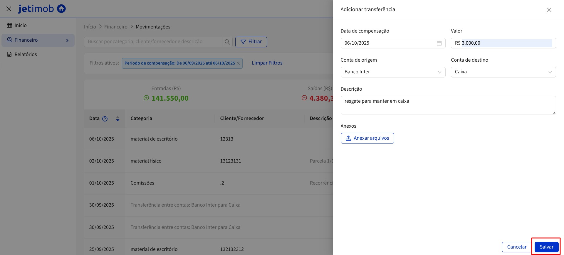 Pronto! Agora você já sabe como cadastrar as movimentações internas entre suas contas dentro do módulo de Gestão Financeira.