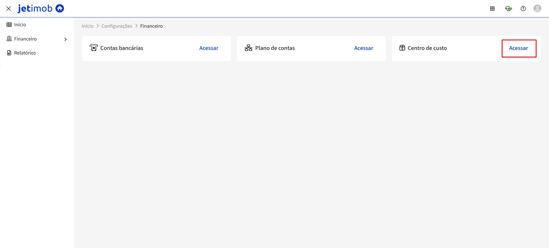 3. Clique em "Acessar", ao lado direito de "Centro de custo ":